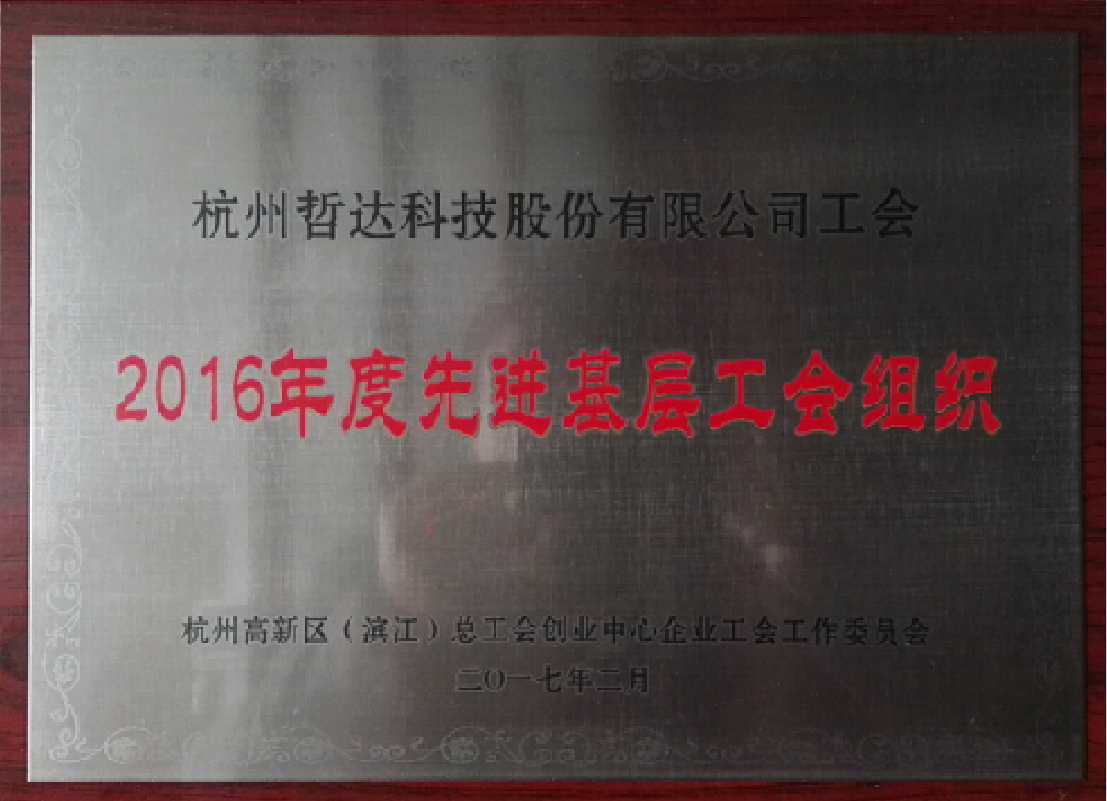 2月21日,杭州高新区(滨江)总工会创业中心工会会议在余杭长乐召开,会上向获评高新区“2016年先进基层工会组织”的企业颁发奖状,我公司喜获荣誉并领奖。