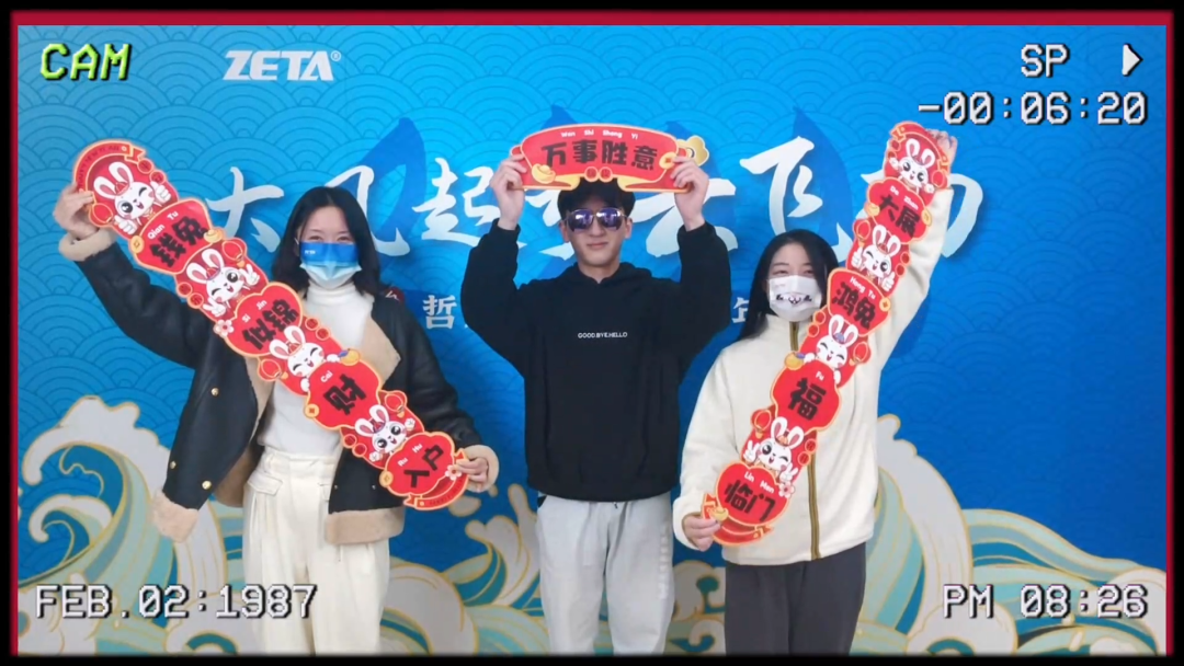 团拜会开始之前,公司和直播间早已萦绕着新年的气息,大红灯笼与新春对联相互映衬,俊男靓女现身直播间,两位主持人为大家献上新年祝福,总部的小伙伴更是纷纷前往现场与k8凯发(中国)吉祥物“达小兔”一起签到直播间。