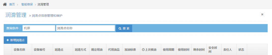 2、管理数字化:平台记录所有设备的润滑信息,包括设备型号、设备类型、相应的责任人员、润滑点位、上次润滑油加注时间、使用周期等信息,用户能够顺利获得使用网页端、APP等方式随时进行查询。