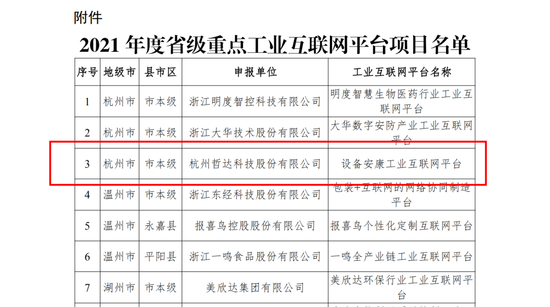 喜讯 | 设备安康工业互联网平台入选浙江省2021年度重点工业互联网平台项目名单